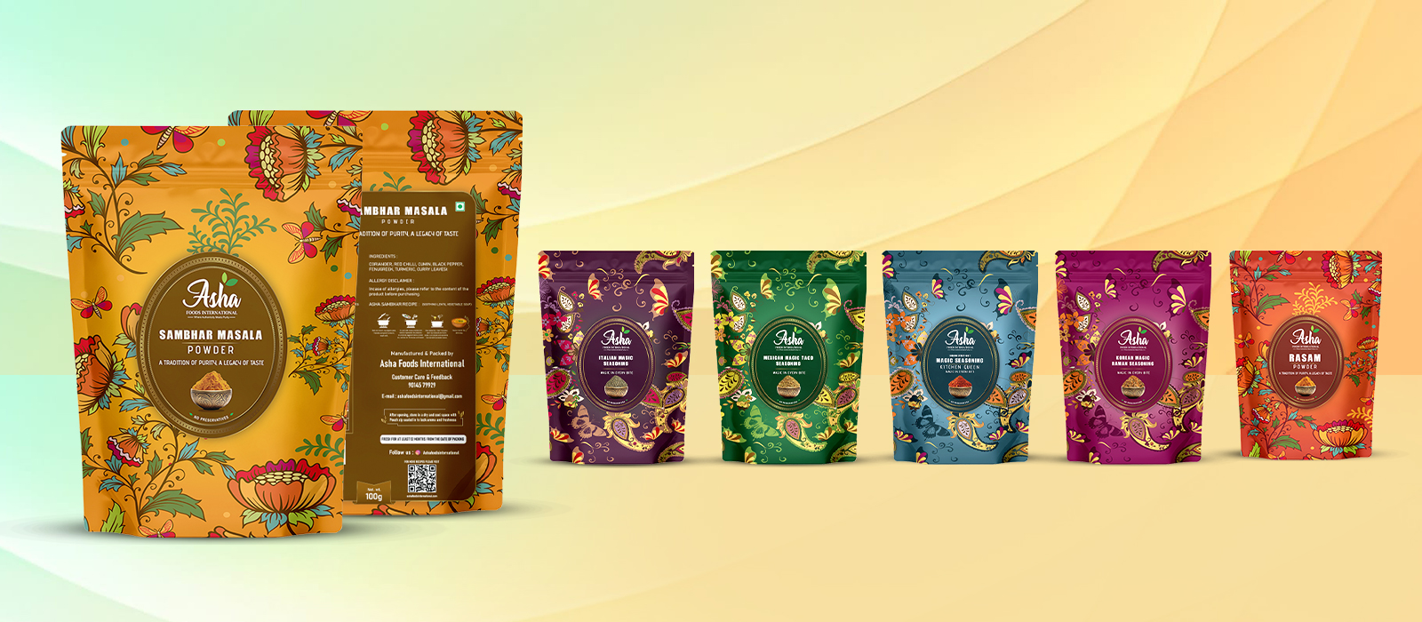 For this homemade masala brand, we blended Indian culture with modern design—crafting vibrant vector-based packaging that captures authentic Indian taste and delighted our international client.