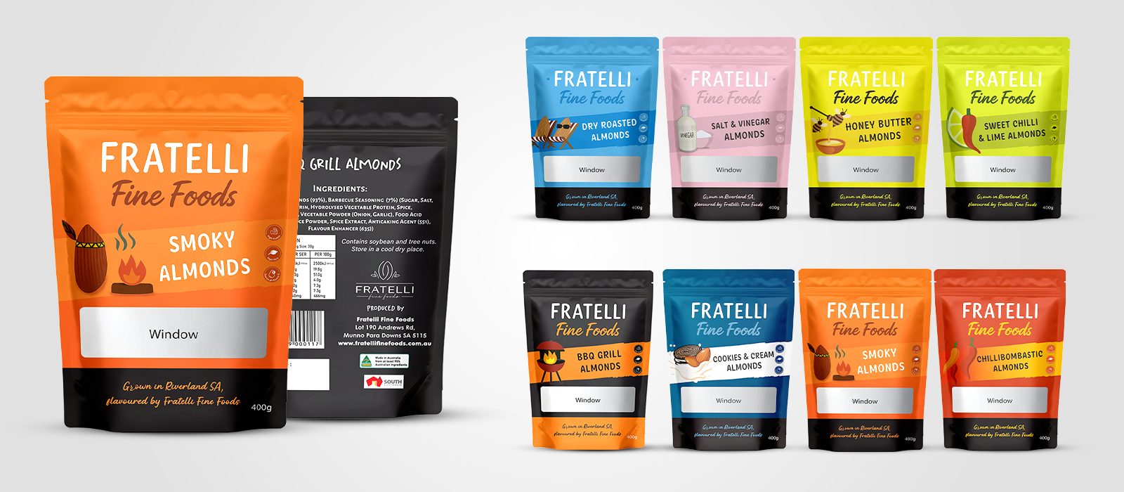 We revitalized Fratelli’s brand with a recreated logo and 8 vector-based designs, enhancing their dry fruit products’ premium appeal and strengthening recognition in the Australian market.